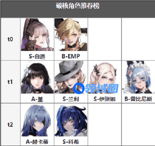 2.【破核】输出虽然必不可少,但过多的破核输出会降低队伍整体的输出能力,这时就需要【纯输出】角色,二者配合才可做到快速清理杂鱼并迅速破核精英敌人和boos,并解决破核后的敌人。