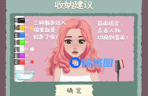 3、然后用梳子粘上粉色染发剂把头发染成粉色就可以通关了,记得背面也要染。