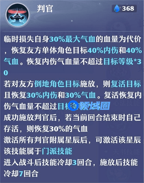 判官是单目标恢复能力最强的技能,可以极限救人,也可以保住内伤太高的友方。
