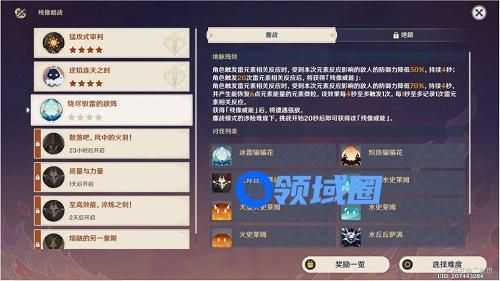 讨伐列表:普通和精英怪的组合,靠雷系输出和风系聚怪 ,雷神、八重神子、九条、温迪肯定首选,如果没有输出能力比较强的雷系,很难处理水史莱姆和火史莱姆,还有冰霜骗骗花和炽热骗骗花,所以(1水1火1雷1风)和(2雷1风1其他)可能是今天比较常见的配队方式