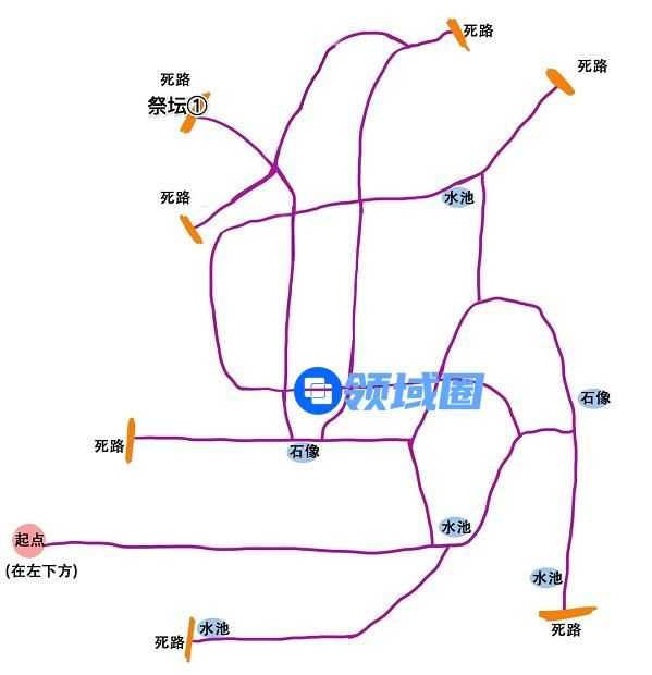 1.起点在右下方,根据出生地有水潭并向左上方出发来确认。