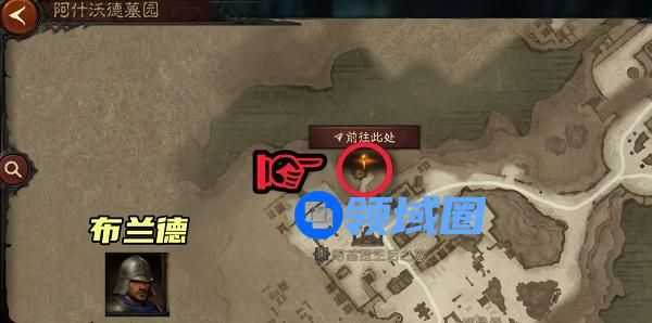 3、布兰德位于阿西拉王后之墓正中间上方位置如下方图红色圈位置。