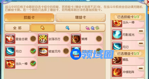 3、技能卡选择:当头一棒+月影摇光+月刅。
