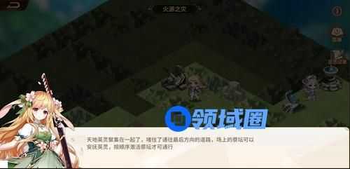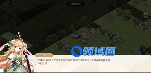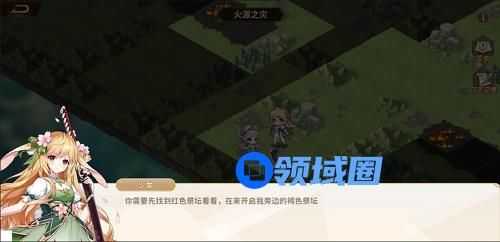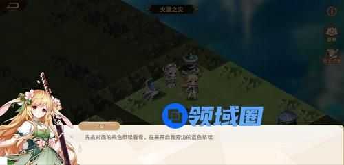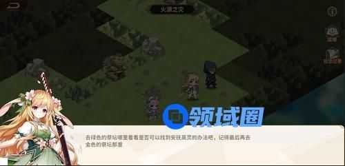 5、往中间走,我们会看到红色的祭坛,这时小姐姐就提到了绿色,就能知道,绿色开了后,才能开红色,那么,我们就把红色打开。