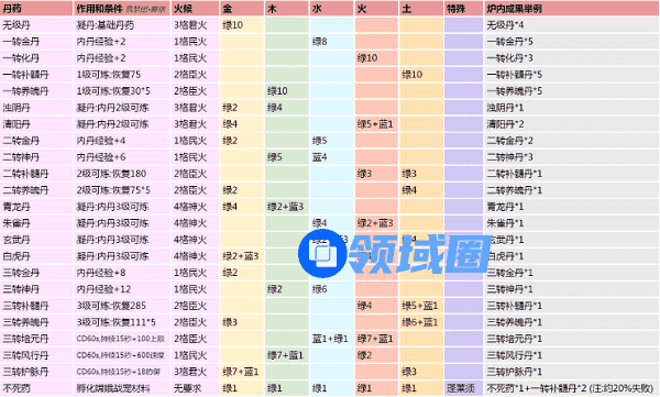 4.正常情况下,只能炼制出等级小于等于玩家内丹等级的丹药,且丹药等级最高为4级。