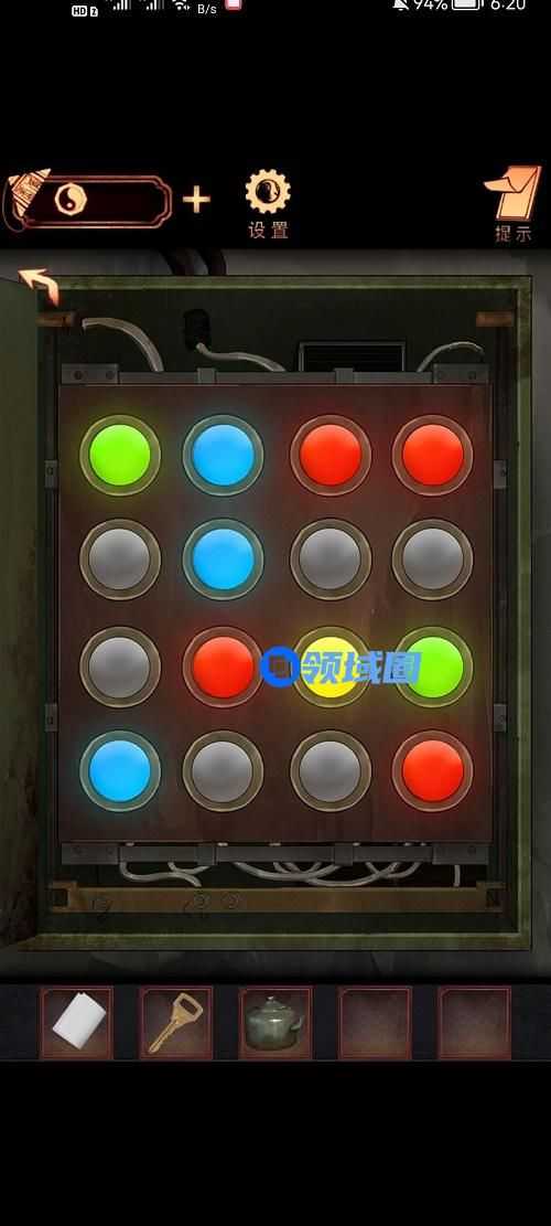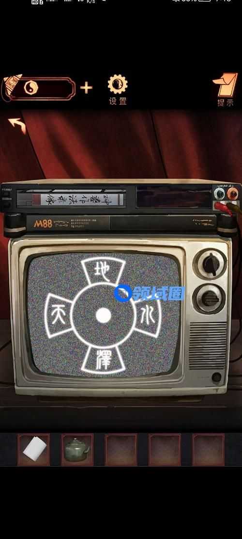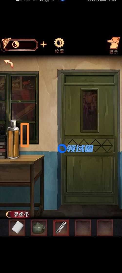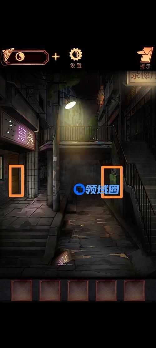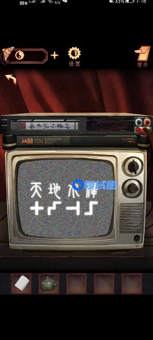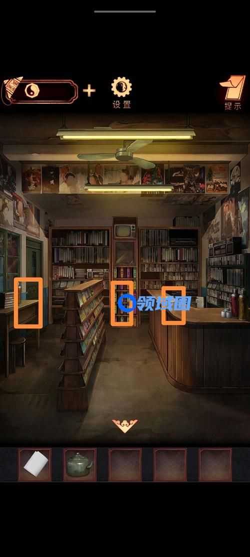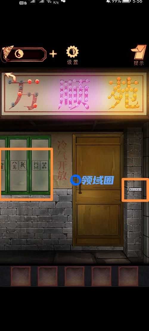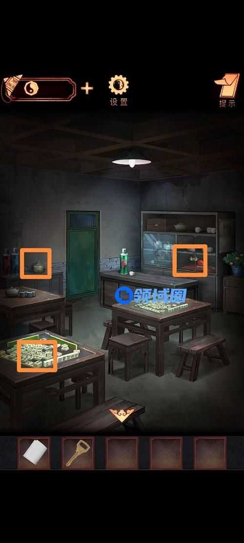 点击靠门的桌子得到水壶,退出麻将馆,观察灯牌上的万字,点亮街道右边的电箱。发现楼梯上面的录像厅可以去了,用钥匙开门。