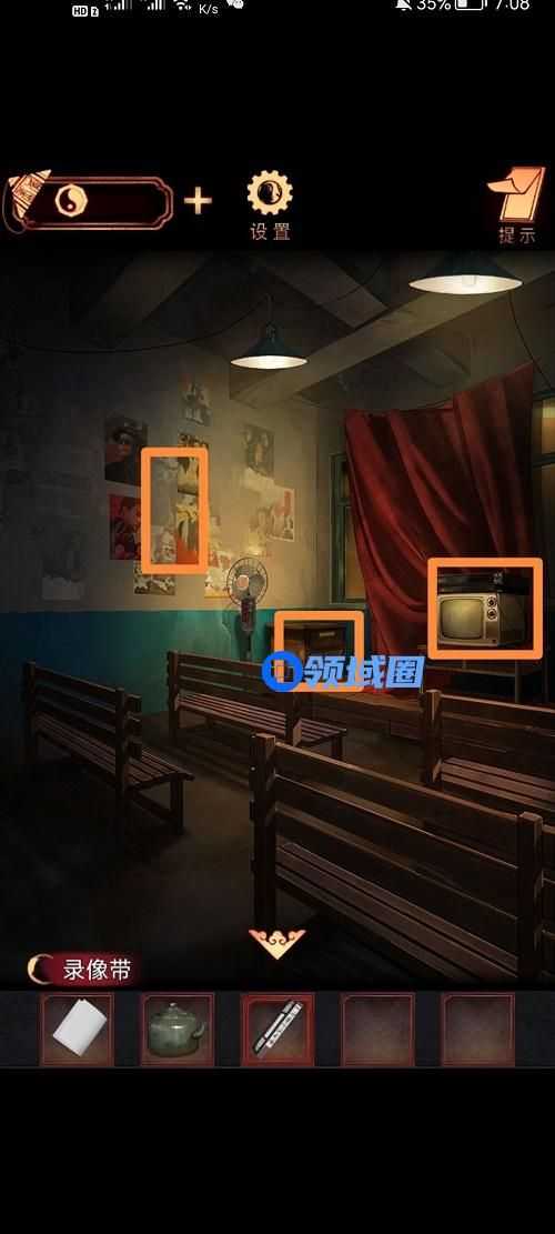 录像厅——查看右边桌子的报纸,结合报纸上颜色,将中间柜子的录像带排序,打开上面的玻璃柜,得到神婆的录像带。