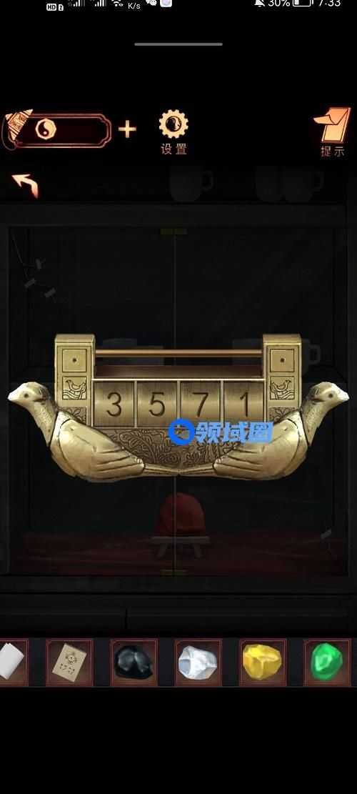 回到麻将馆内,查看麻将桌上的麻将,因为右边玻璃柜上的锁两边是鸟的形状,所以桌上两个幺鸡中间的麻将代表了开锁的密码——3571,得到红玛瑙。