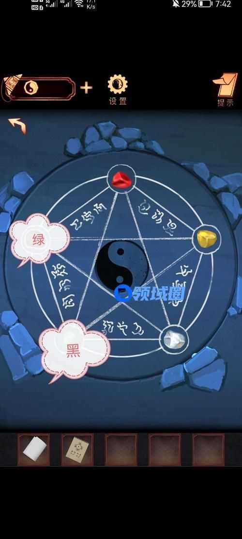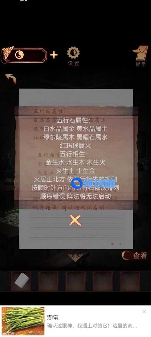 回到后院,将五种石头放在地上的阵法中,根据属性摆放即可通关。