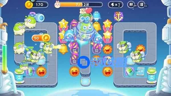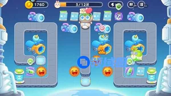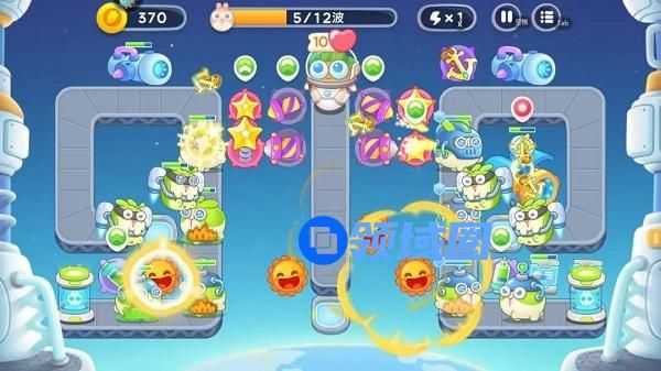 3.第4波 开始出现滑翔兔,前3波把萝卜旁边的障碍物清理得差不多了,第4波开始在萝卜两边建造导弹塔和星星塔。