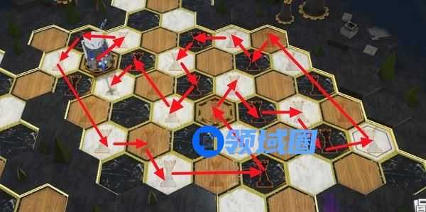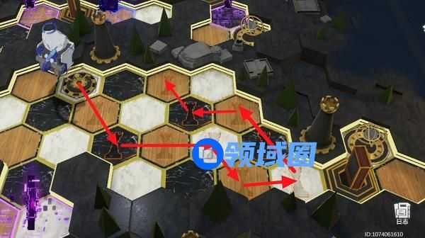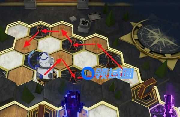 首先要在圈出来的地方使用机关使凸起的棋盘落下,才能开始正式的解谜。