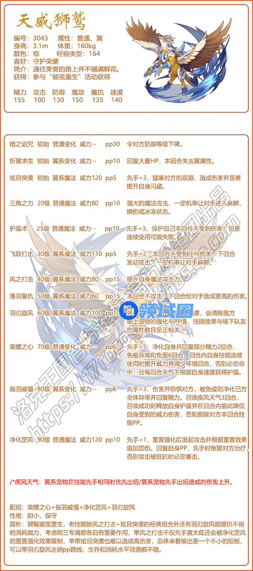 洛克王国天威狮鹫可以通过破茧重生活动获得,很多玩家不知道它拥有哪些技能,游戏宝小编带来洛克王国天威狮鹫技能表一览,希望可以帮到大家。