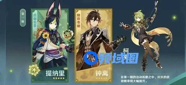 1.3.0版本卡池顺序为上半提纳里钟离+新四星草系角色柯莱(活动做完可免费获取一个)