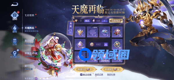 1.蔡文姬-奇迹圣诞和吕布-天魔缭乱两款限定皮肤以限时抽奖的形式返场。除此之外本次活动还将产出系列回城特效、击败特效、表情、动作、头像框等,喜欢的小伙伴们不要错过哦