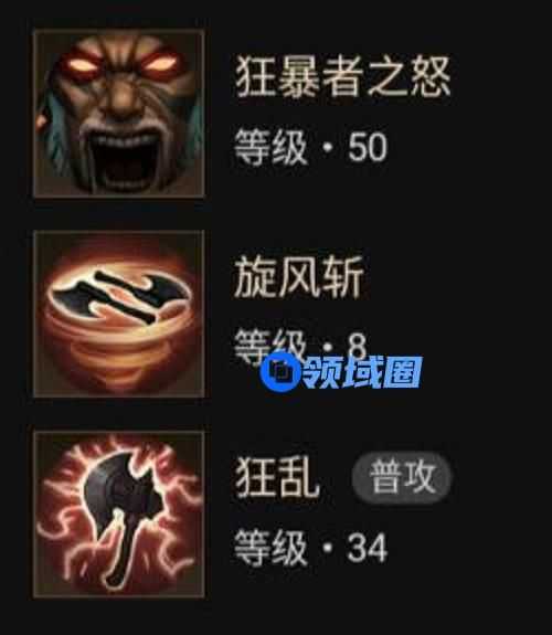 核心技能:狂乱(普攻)、狂暴者之怒、旋风斩