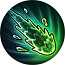 向选定的目标区域释放一团持续7秒的毒雾,碰到毒雾的敌人,会在2秒内降低15%/20%/25%/30%/35%移动速度,并且每秒受到一次法术伤害,站在毒雾中会持续刷新中毒状态。