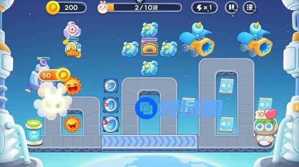 3.后续几波多建造雷达和导弹塔即可。记得在出口处建造毒针,本关的滑板兔速度快容易冲破防线,而且炮塔不会优先攻击滑板兔,因此需要我们手动点滑板兔优先攻击。