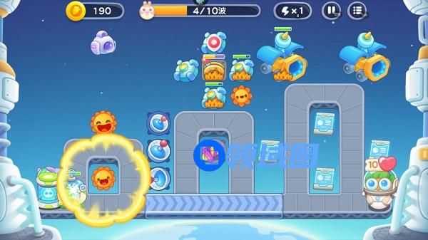 2.第4波 建造一个太阳花来处理周围的障碍物,早点打掉传送带的开关。出现飞碟兔,可以建造导弹塔或船锚应对。