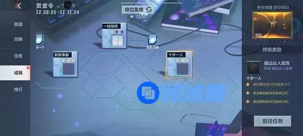 四、排位模式任务可以选择与朋友组队进行团队模式,且目前赛季更新已有一段时间,分数任务基本都是可以达到的。中间的支线任务狙击击杀可以使用妙才完成,因为任务可以重叠触发,基本上团队可以完成多个任务,成就积分也是可以拿到许多的。