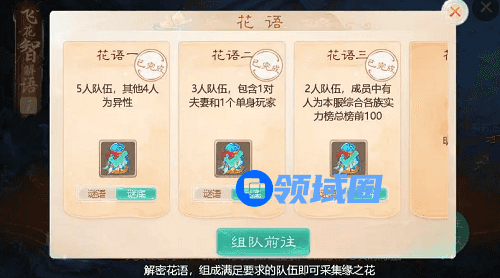4、解密花语,组成满足要求的队伍即可采集缘之花。