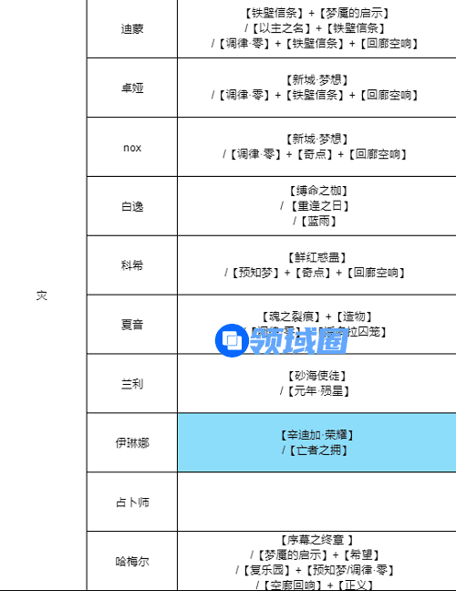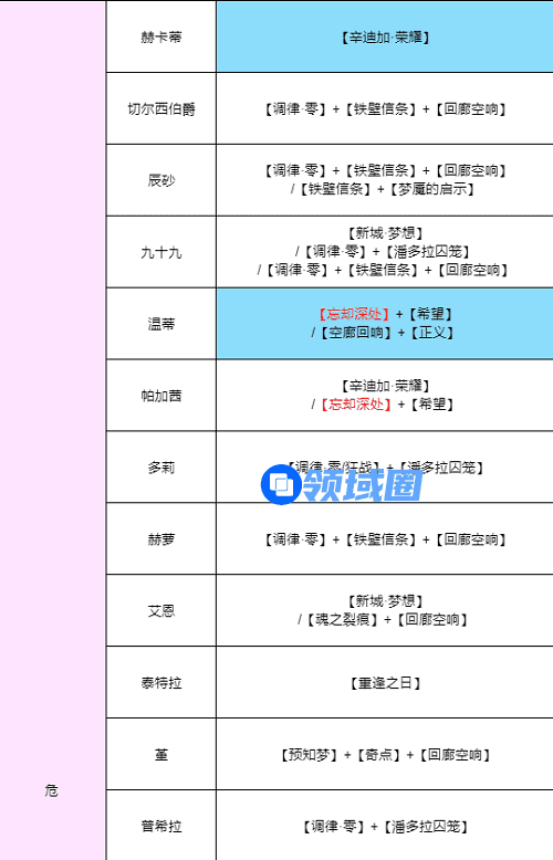 2.危级全角色烙印搭配推荐如下: