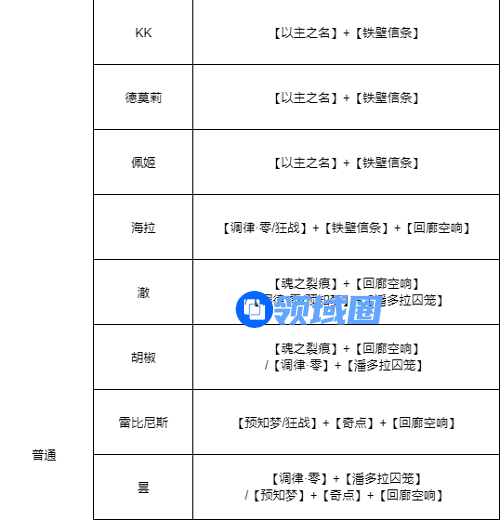 3.普级全角色烙印搭配推荐如下:
