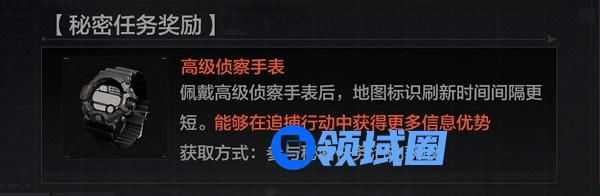 活动期间使用显影液可抽取相片线索,携带相片进入战术行动触发秘密任务,前往相片上的地点即可交互完成任务。完成任务不仅有高级装备奖励,完成8次还可获得下一阶段【追捕行动】重要道具——高级侦察手表。