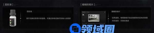 相片:使用显影液兑换,每日最高兑换6次。多余相片可在联络人迪克·文森处售卖;