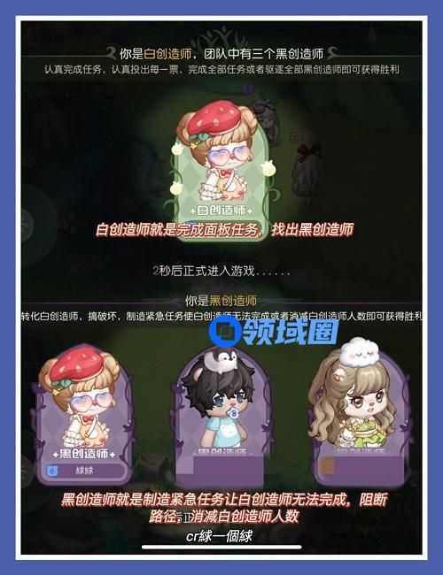 ①黑创造师:隐藏好身份,制造紧急任务让白创造师无法完成;设置路障阻断白创造师,削减白创造师(尽量无人看见动手)。