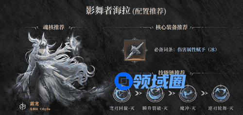 1、影舞者海拉武器主冰属性,魂核搭配霜龙可以更好的发挥出职业特色。