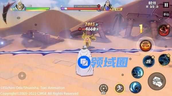 在装备3号徽章的情况下,雷利技能拥有小范围聚怪效果,所以助战可以带一些爆发伤害较高的技能。入场后普攻4A替换1技能为【见闻色霸气】并释放,随后1技能【前进喷泉】突进攻击并卡准时机再次点击释放前推掌攻击,而后利用追加1技能打出AOE输出,这里我们可以打出一套普攻聚怪,或直接以2技能输出,然后连续点击释放滑翔踢,最后以追加2技能【银斩】再次聚怪并终结敌人!