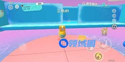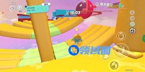 紧接着就到了本关卡的重头戏:通往迷宫的困难道路。稍有基础的新手玩家也许会利用跳跃加飞扑的动作,但令人惊讶的是这个方法在此障碍面前无法使用!仿佛一拳打在了棉花上的无助。不过,细心的玩家会发现跳出的垫脚石工具。敲黑板啦~垫脚石的正确用法!玩家拿起垫脚石,先按跳跃键,当蛋仔跳出一段距离,玩家要快速按垫脚石按键,这时最重要的是操作连贯,不能乱了手脚哦!