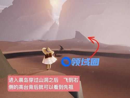 1、进入晨岛穿过山洞之后,飞到右侧的高台背后就可以看到先祖啦。