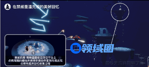 2、在禁阁重温先祖的美好回忆:禁阁四层,雨林星图右边浮空平台上。需点燃蜡烛摆出祈祷动作直到中间石碑完全变白,然后重温出现的先祖的收集过程。