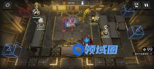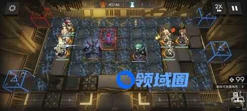 这一关的难点就是溟痕铺开速度极快,所以地面干员压力无比巨大,所以buff选择上,只有4号是蓝色,其他都是红色即可。输出主要是高台干员为主。