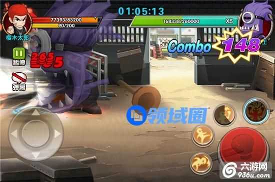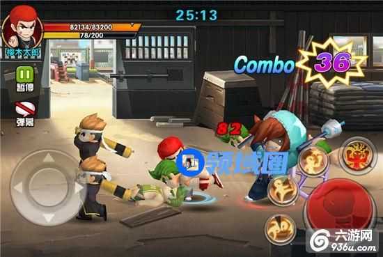 进入关卡后,第一看见的不是小怪,而是第一个小BOSS,别小看这妹子哦,如果你上来没有准备好,和她走的是同一条直线就有可能被她的飞镖打中,伤害还不低,所以要格外小心,在打小BOSS的同时,要注意右侧出来的小怪,个个手上是拿着篮球来砸你的哦,最好的办法就是运用走位,从旁边绕到小怪身后,将小 怪和小BOSS集中在一起,然后一套连击将他们击败,击败后我们顺势来到了第二波。