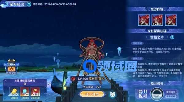 3. 战斗中会受到深海法阵的影响。深海法阵共7种,每天会出现1种,每个深海法阵会有各自的对怪物的增幅效果。小奥拉根据深海法阵提示携带对应的隐月特性可以获得破阵启示,在战斗中额外获得增益效果;