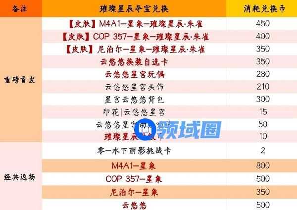 3.下面是璀璨星辰夺宝兑换表,请大家自行预览。