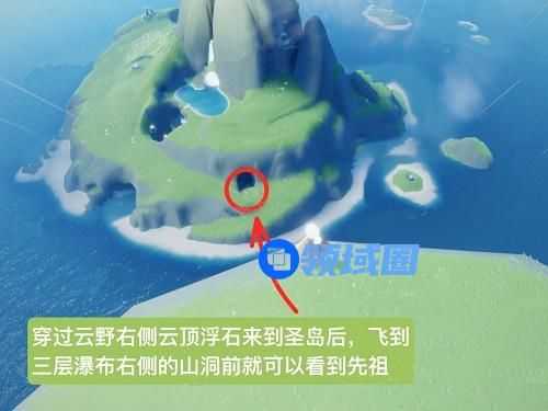 2、从云野云顶浮石进入圣岛以后,可以看到瀑布右边有一个山洞,山洞进去以后就可以找到9.8复刻的先祖了。