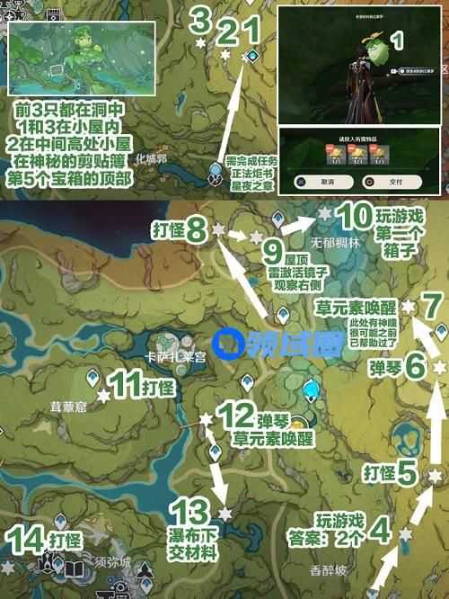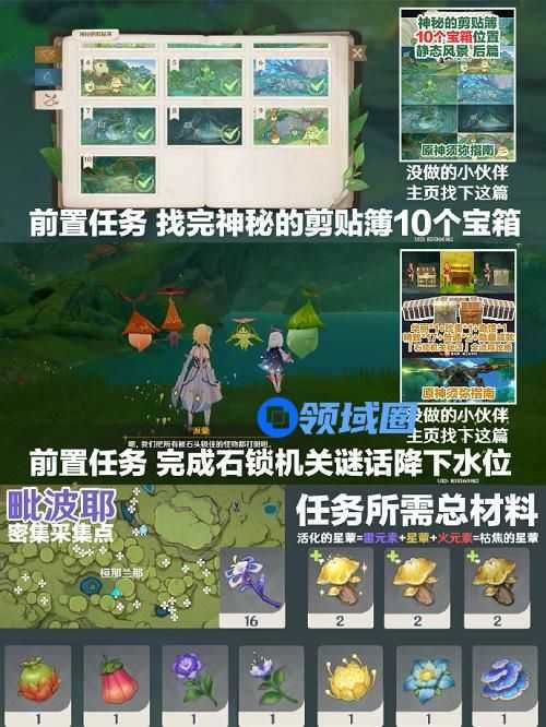 5、前置任务:一定要完成森林书神秘的剪贴簿,10个宝箱的挖掘才有最后的宝箱群,石锁机关谜话也可以到23再开始做,不过推荐先做不然做一半开别的大型任务。