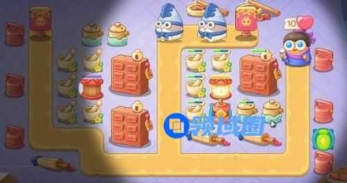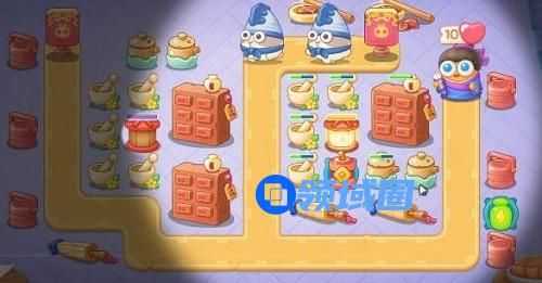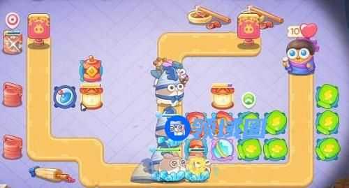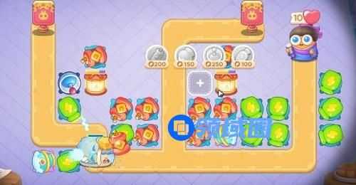 1、开始的时候先在右边的中间放一个炮仗塔,然后把它升到满级,接着清理四周道具,在右下角造瓶子,清理道具和兔子。