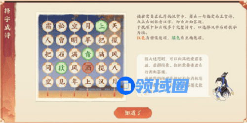 7、在择字成诗玩法开放时,渊识相助的次数按照选对汉字的数量计算。