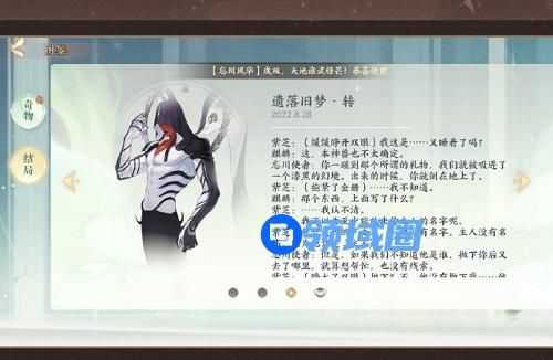 4、“合”:在第四层最后一个问卜点选第一个选项打开佩囊(在此之前至少有六个生效奇物)获得“心字罗衣”。