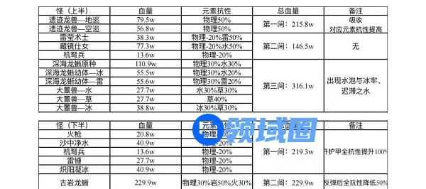 一、本期深渊怪的伤害并不高,但是血量非常的厚,并且某些层怪站位分散,非常难打。下面是怪的血量以及抗性,下面是每一间怪的详细数据: