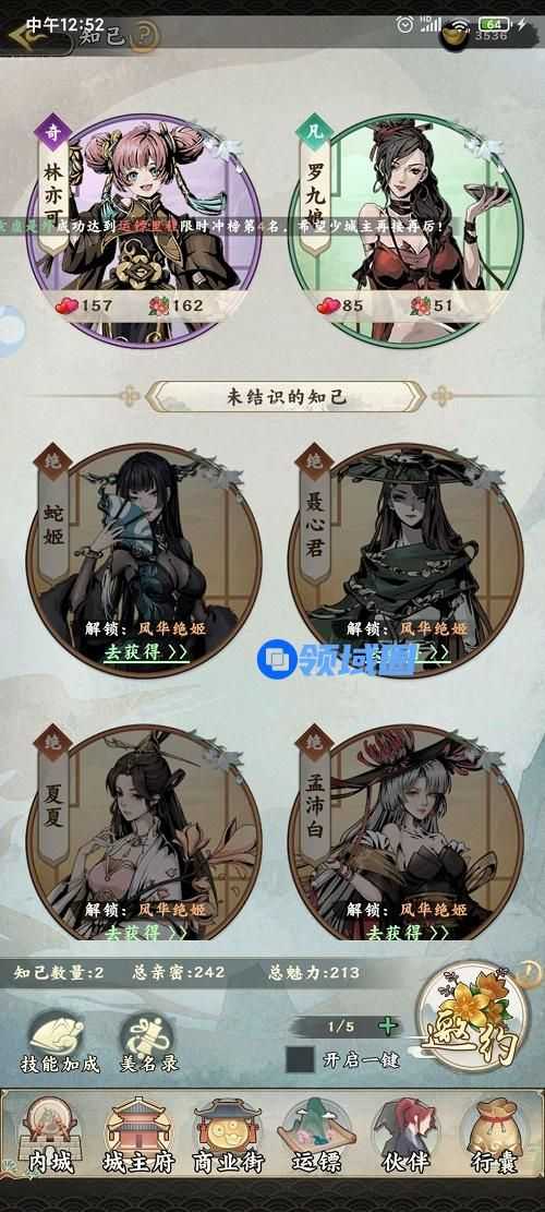 3、知己的伙伴技能提升同样会关联羁绊伙伴的实力,越到后期影响越大,因此也是需要主练一个先的。同时知己亲密度和美名提高后,也会影响到典籍的繁荣度,专注提升一个可能研读出更高品质的典籍和大佬交流,给自己一个白嫖大佬繁荣度的机会