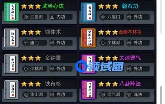 4.昆仑镜在对战时有概率给白绿功法升星,升到武当心法的概率是25%(3白1绿),如果升到武当心法,那么武当心法拉八卦阵法,八卦阵法再拉外功,最终免伤可达到30+50(随外功宝典等级升高而升高),8阶外功即可达到100免伤。