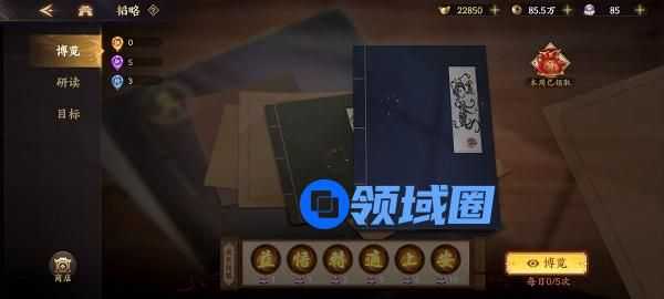 1.新增玩法,从【城池->韬略】进入,玩法分为【博览】,【研读】,【目标】三部分。
