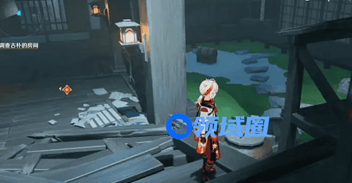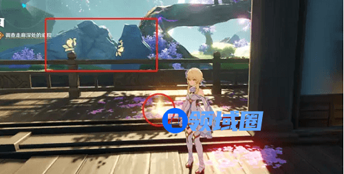 5、随后我们跟随人物指引进入下一个部分。又来到庭院,我们需要站到圆圈处调整视角将方框拼成一块。