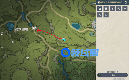 1、从七天神像往西走接取任务,由于我提前在不知情的情况下接取了,图中拿标点替代。