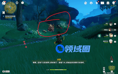 6、接着是第二只驮兽,位于上方任务点的。靠近后击败丘丘人解救驮兽,进入对话。